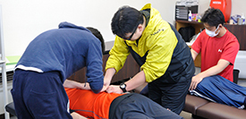 筋・骨格系・血管系・リンパ系の解剖学を理解した上で、筋・骨格系のバランス調整のために必要な解しのテクニック・矯正テクニック・PNFストレッチング・パートナーストレッチング等の手技を修得し、その技術レベルを実技審査で証明しなければなりません。尚、講義カリキュラムには理論・実技の双方が含まれていますのでご注意ください。